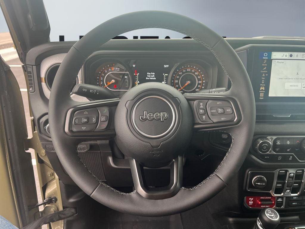 Convenience Group: Emergency/assistance Call; Front Door Locks 2-Door Passive Entry; Remote Start System; Universal Garage Door Opener; Daytime Running Lamp System; Heated Front Seats; Heated Steering Wheel; Corning Gorilla Glass. Technology Group: Google Android Auto; SiriusXM Radio Service; 12.3" Touchscreen Display; USB Host Flip; 400W Inverter; HD Radio; Integrated Center Stack Radio; Rear View Auto Dim Mirror; Bluetooth® Wireless Speaker; Integrated Voice Command with Bluetooth®; Connectivity - US/Canada; Uconnect 5 Navigation with 12.3" Display; GPS Navigation; 4G LTE Wi-Fi Hot Spot; GPS Antenna Input; Media Hub with 2 Charge Only USBs; SiriusXM with 360L; 115V Auxiliary Power Outlet; Connected Travel and Traffic Services; Alexa Built-In; Apple CarPlay. Quick Order Package 24W Willys: LED Taillamps; Protection Sill Rails; 4-Wheel Drive Decal; Black Grille; MOPAR All-Weather Slush Mats; LT255/75R17C OWL On/off Road Tires; 2-Piece Body Color Fender Flares; Front Heavy Duty Red Accent Shock Absorbers; Daytime Running Lamps LED Accents; Front LED Fog Lamps; LED Premium Reflector Headlamps; E-Locker Rear Axle; Trailer Hitch Zoom; Class IV Receiver Hitch; Security Alarm; Mold in Color Bumper with Gloss Black; Advanced Brake Assist; Willys Suspension; Heavy Duty Engine Cooling; Automatic Headlamps; Air Conditioning with Auto Temp Control; Deep Tint Sunscreen Windows; Off-Road Plus Mode; 17" X 7.5" Painted Black Wheels; Willys Hood Decal; Full Speed Forward Collision Warning Plus; Rear Heavy Duty Red Accent Shock Absorbers; Front Door Locks 2-Door Passive Entry; Cluster 7.0" TFT Color Display; Power Heated Mirrors; Enhanced Adaptive Cruise Control; Auxiliary Switches; Premium Wrapped Steering Wheel; Sun Visors with Illuminated Vanity Mirrors. Black 3-Piece Hard Top. 41. **Equipment listed is based on original vehicle build and subject to change. Please confirm the accuracy of the included equipment by calling the dealer prior to purchase.**