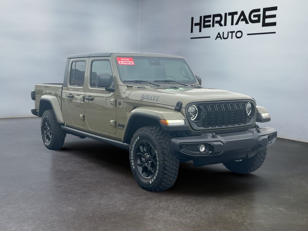 Introducing the 2025 Jeep Gladiator Willys, a robust and versatile pickup tailored for both rugged adventures and everyday driving. This model boasts a 4WD system, ensuring optimal traction and control on any terrain. Under the hood lies a potent V6, 3.6L engine that delivers a remarkable balance of power and efficiency, making it perfect for off-road escapades or city commutes. Equipped with an Off-Road Package, the Jeep Gladiator Willys is prepared to tackle challenging landscapes with confidence. The package includes specialized suspension enhancements, skid plates, and all-terrain tires, ensuring you're ready for whatever the trail may bring. Safety is paramount, and the Forward Collision Warning system provides an extra layer of protection by alerting you to potential hazards on the road. Stay connected and entertained with the integrated Hands-Free Bluetooth® and Android Auto, allowing seamless access to navigation, music, and communication without taking your eyes off the road. The convenience of Remote Start ensures your vehicle is ready to go when you are, offering comfort and ease from the moment you step inside. Experience the perfect fusion of rugged capability and modern technology with the 2025 Jeep Gladiator Willys—a vehicle designed for those who seek adventure without compromising on comfort or safety.