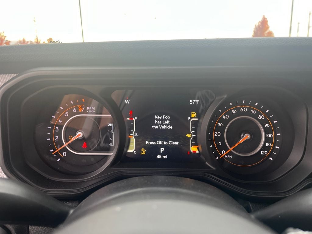 Convenience Group: Emergency/assistance Call; Front Door Locks 2-Door Passive Entry; Remote Start System; Universal Garage Door Opener; Daytime Running Lamp System; Heated Front Seats; Heated Steering Wheel; Corning Gorilla Glass. Safety Group: Auto High Beam Headlamp Control; Blind Spot and Cross Path Detection; LED Taillamps; ParkSense Rear Park Assist System. Technology Group: Google Android Auto; SiriusXM Radio Service; 12.3" Touchscreen Display; USB Host Flip; 400W Inverter; HD Radio; Integrated Center Stack Radio; Rear View Auto Dim Mirror; Bluetooth® Wireless Speaker; Integrated Voice Command with Bluetooth®; Connectivity - US/Canada; Uconnect 5 Navigation with 12.3" Display; GPS Navigation; 4G LTE Wi-Fi Hot Spot; GPS Antenna Input; Media Hub with 2 Charge Only USBs; SiriusXM with 360L; 115V Auxiliary Power Outlet; Connected Travel and Traffic Services; Alexa Built-In; Apple CarPlay. Quick Order Package 24W Willys: LED Taillamps; Protection Sill Rails; 4-Wheel Drive Decal; Black Grille; MOPAR All-Weather Slush Mats; LT255/75R17C OWL On/off Road Tires; 2-Piece Body Color Fender Flares; Front Heavy Duty Red Accent Shock Absorbers; Daytime Running Lamps LED Accents; Front LED Fog Lamps; LED Premium Reflector Headlamps; E-Locker Rear Axle; Trailer Hitch Zoom; Class IV Receiver Hitch; Security Alarm; Mold in Color Bumper with Gloss Black; Advanced Brake Assist; Willys Suspension; Heavy Duty Engine Cooling; Automatic Headlamps; Air Conditioning with Auto Temp Control; Deep Tint Sunscreen Windows; Off-Road Plus Mode; 17" X 7.5" Painted Black Wheels; Willys Hood Decal; Full Speed Forward Collision Warning Plus; Rear Heavy Duty Red Accent Shock Absorbers; Front Door Locks 2-Door Passive Entry; Cluster 7.0" TFT Color Display; Power Heated Mirrors; Enhanced Adaptive Cruise Control; Auxiliary Switches; Premium Wrapped Steering Wheel; Sun Visors with Illuminated Vanity Mirrors. Black 3-Piece Hard Top. Granite Crystal Met CC. **Equipment listed is based on original vehicle build and subject to change. Please confirm the accuracy of the included equipment by calling the dealer prior to purchase.**