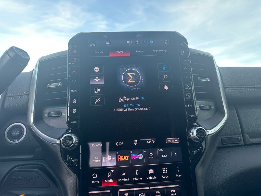 Cold Weather Group: Engine Block Heater; MOPAR Winter Front Grille Cover. Laramie Level 2 Equipment Group: Google Android Auto; SiriusXM Radio Service; Rain Sensitive Windshield Wipers; Power Adjustable Pedals with Memory; Integrated Voice Command with Bluetooth®; Connectivity - US/Canada; Emergency Vehicle Alert System (EVAS); Auto Power-Folding Mirrors; GPS Navigation; 4G LTE Wi-Fi Hot Spot; GPS Antenna Input; Exterior Mirrors with Heating Element; Auto Dim Exterior Mirror; SiriusXM with 360L; Anti-Spin Differential Rear Axle; Global Telematics Box Module; Connected Travel and Traffic Services; Mirror Running Lights; Foam Bottle Insert (door Trim Panel); Alexa Built-In; Apple CarPlay; Power Adjustable Convex Aux Mirrors; Off-Road Info Pages; Forward and Reverse Utility Lights; Selectable Tire Fill Alert; Trailer Tow Pages; Disassociated Touchscreen Display; Leather Trimmed Bucket Seats; HD Radio; 14.4" Touchscreen Display; Power Heated Fold Telescopic Mirrors with Memory; Exterior Mirrors with Supplemental Signals; Exterior Mirrors Courtesy Lamps; Uconnect 5 Nav with 14.4" Display; Remote Tailgate Release; 17 Speaker Harman/kardon Premium Sound; Auto High Beam Headlamp Control; Chrome Exterior Mirrors; Exterior Mirrors with Memory; Power Adjust Mirrors; 2nd Row in Floor Storage Bins; Power Telescoping Mirrors; Auto Dim Exterior Passenger Mirror; Auto Adjust in Reverse Exterior Mirrors. Quick Order Package 24H Laramie. Safety Group: Active Lane Management System; Auto High Beam Headlamp Control; Rain Sensitive Windshield Wipers; Drowsy Driver Detection; Traffic Sign Recognition; Adaptive Steering System. Leather Trimmed Bucket Seats. Diamond Black Crystal PC. MOPAR Front and Rear Rubber Floor Mats. **Equipment listed is based on original vehicle build and subject to change. Please confirm the accuracy of the included equipment by calling the dealer prior to purchase.**