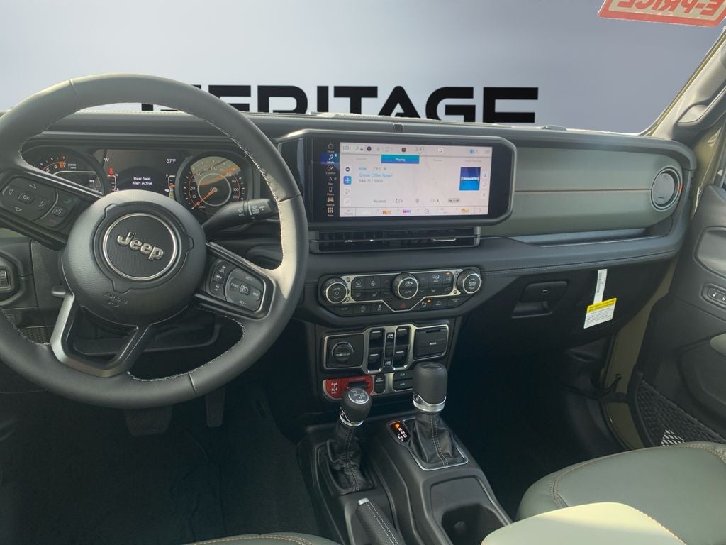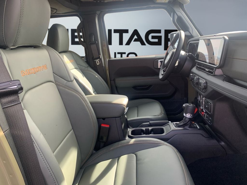 Quick Order Package 24A Mojave X: Steel Front Bumper; Alpine Premium Audio System; Integrated Off-Road Camera; USB Host Flip; Blind Spot & Cross Path Detection; Rear View Auto Dim Mirror; Body Color 3-Piece Hard Top; Heated Front Seats; Bluetooth® Wireless Speaker; Integrated Voice Command W/Bluetooth®; Mojave Top Hood Decal; Uconnect 5 Nav W/12.3" Display; Rock Protection Sill Rails; Auto High Beam Headlamp Control; Universal Garage Door Opener; Heated Steering Wheel; ParkSense Rear Park Assist System; Body Color Rubicon Highline Flare; Leather Trimmed Bucket Seats; MOPAR Hardtop Headliner; Steel Rear Bumper. MOPAR Heavy Duty Rock Slider W/Step Assist. 41. MOPAR Spray In Bedliner. **Equipment listed is based on original vehicle build and subject to change. Please confirm the accuracy of the included equipment by calling the dealer prior to purchase.**