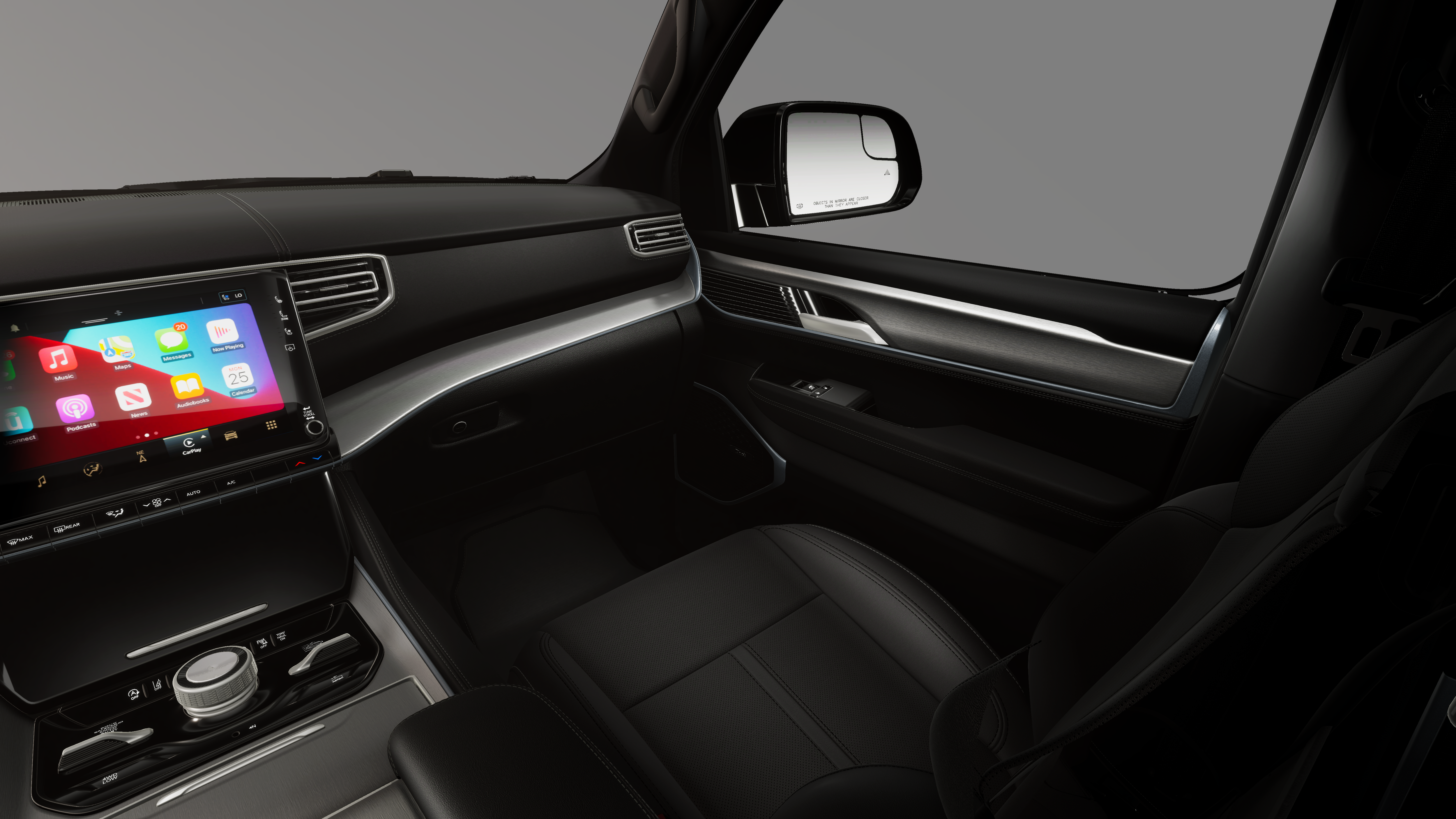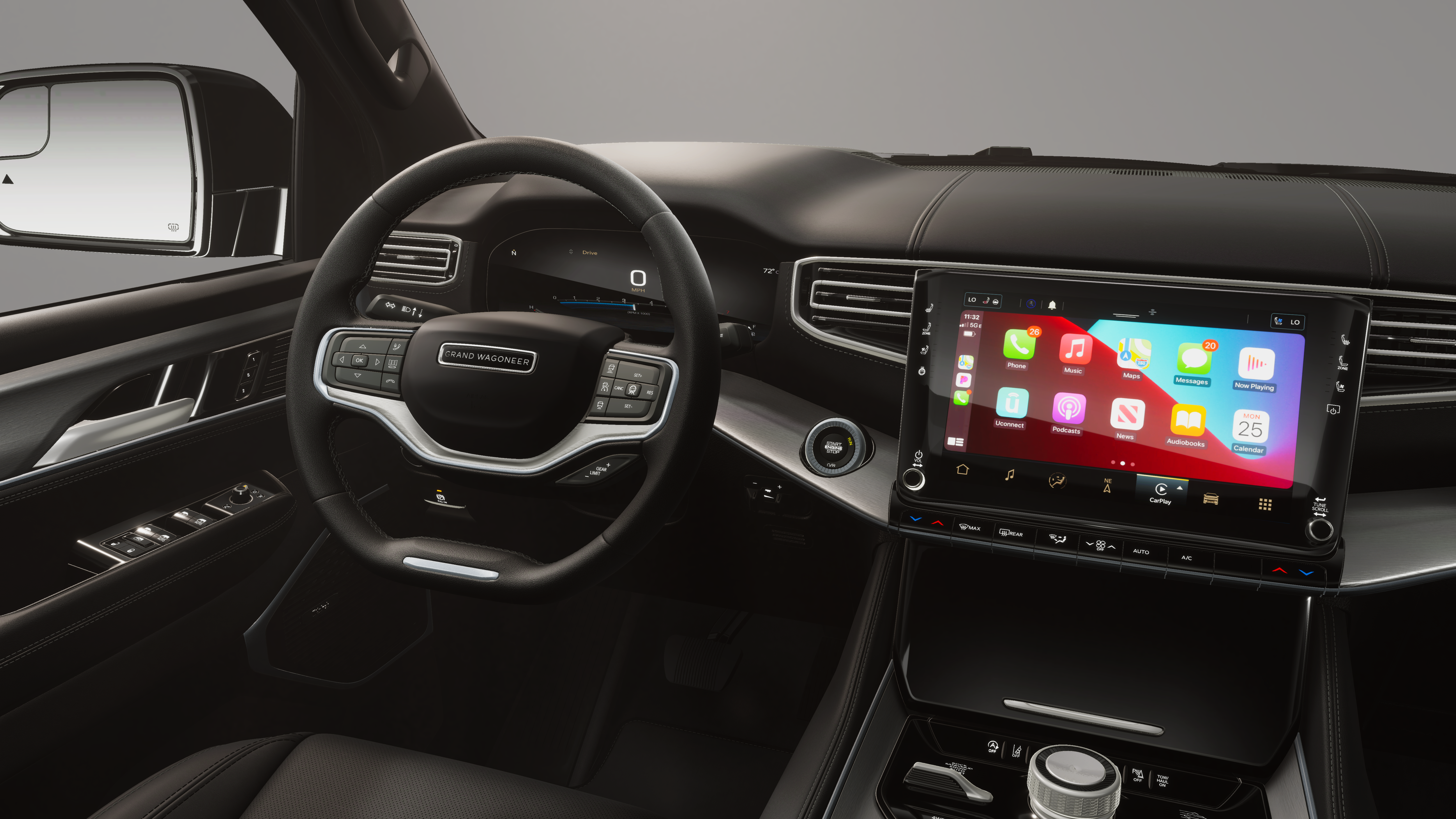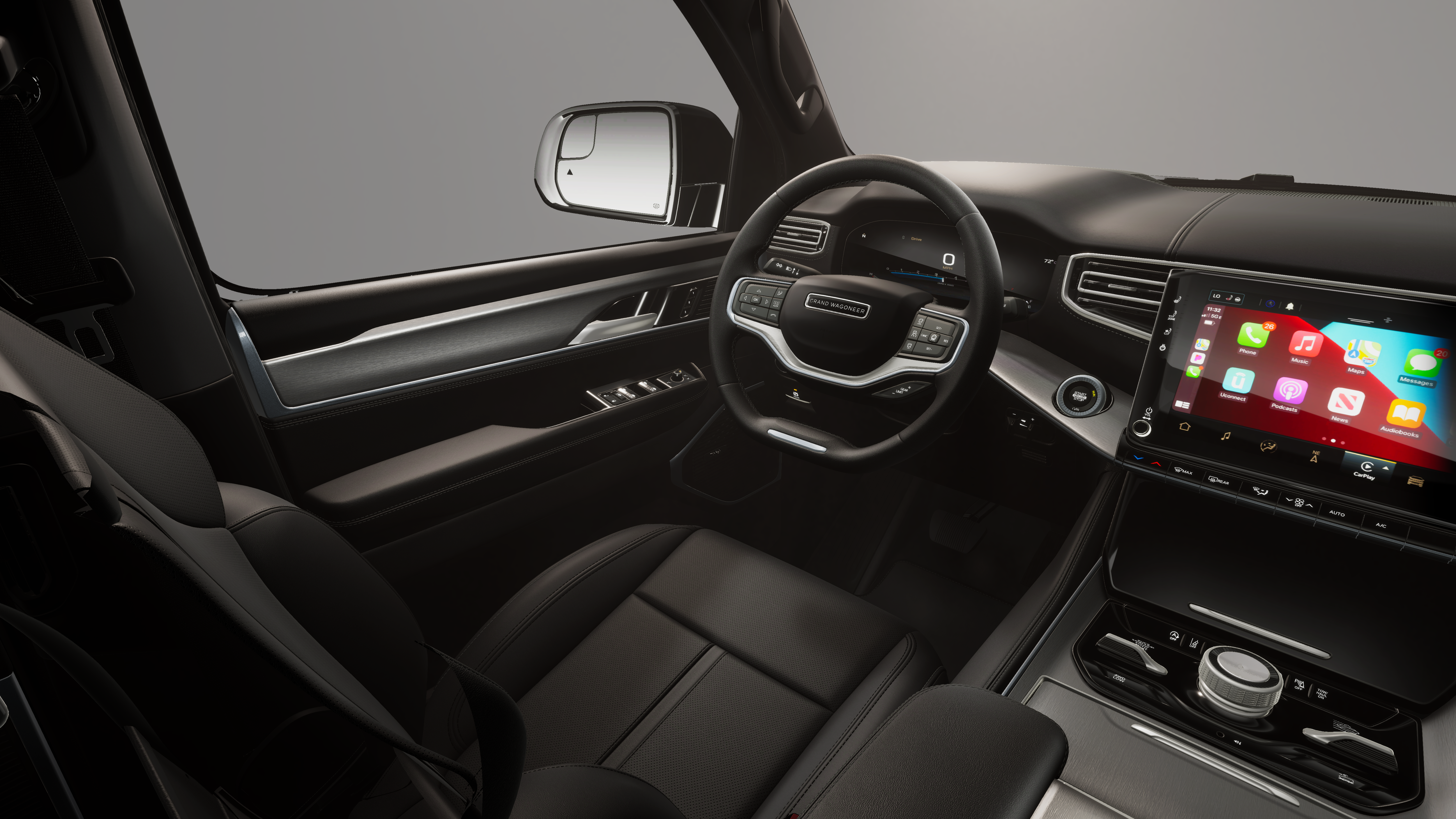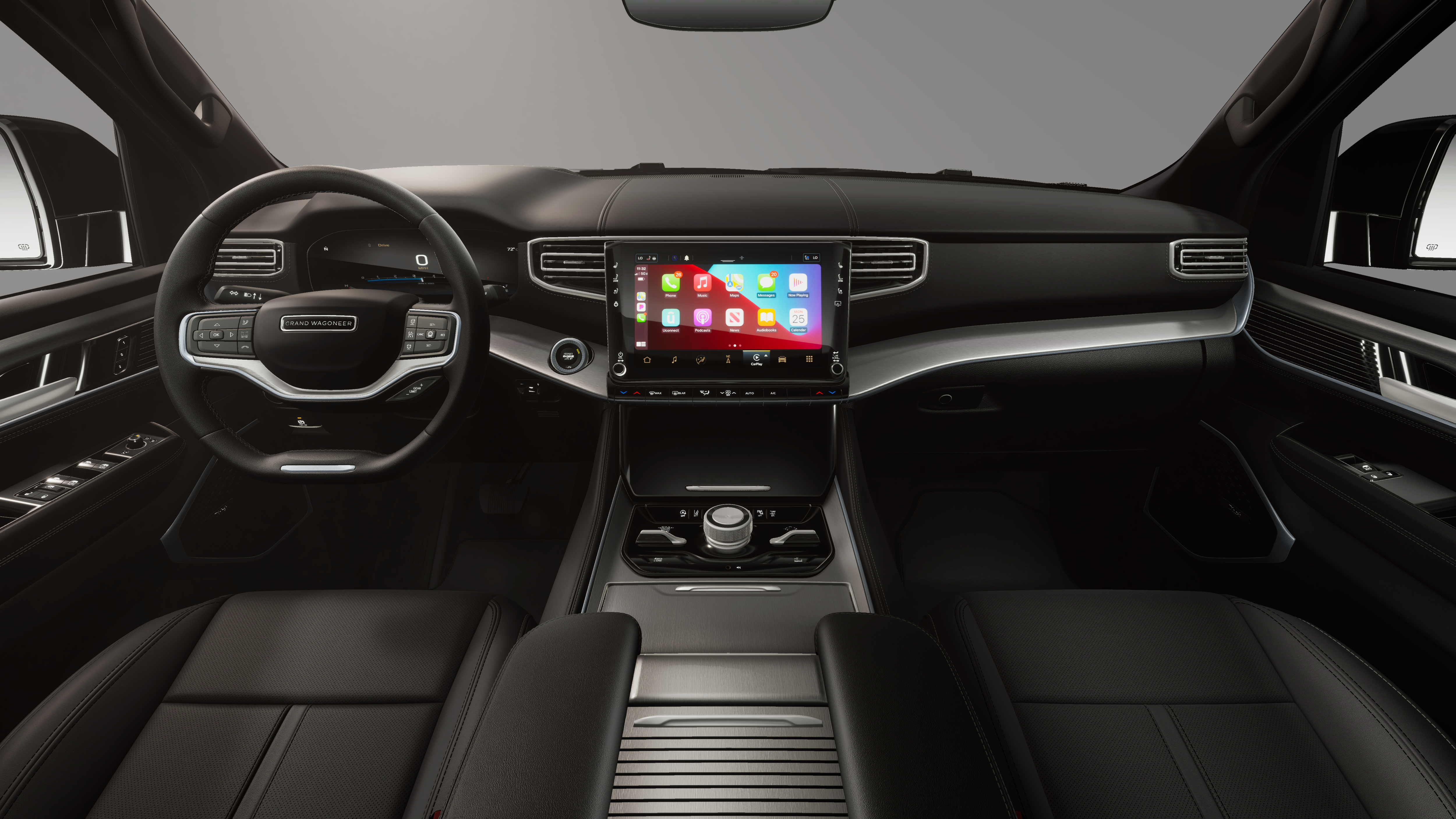 The leather seats in it are a must for buyers looking for comfort, durability, and style. Bluetooth® technology is built into it, keeping your hands on the steering wheel and your focus on the road. Apple CarPlay: Seamless smartphone integration for this unit - stay connected and entertained on the go! You'll never again be lost in a crowded city or a country region with the navigation system on the Jeep Grand Wagoneer. Never get into a cold vehicle again with the remote start feature on it. This model has auto-adjust speed for safe following. Keep your hands warm all winter with a heated steering wheel in this model . The vehicle's Forward Collision Warning feature alerts drivers to potential front-end collisions. Protect this vehicle from unwanted accidents with a cutting edge backup camera system. The vehicle offers Android Auto for seamless smartphone integration. The vehicle has an elegant black exterior finish.