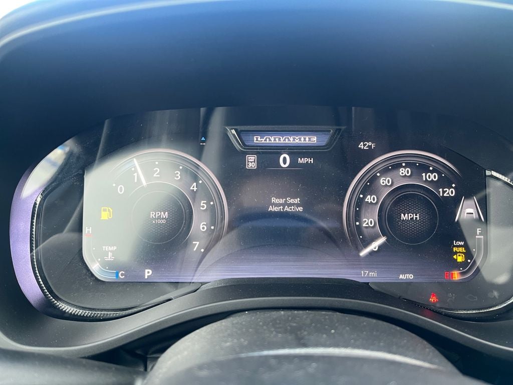 Advanced Safety Group II: Exterior Mirrors Approach Lamps; Active Driving Assist System; Surround View Camera System; Evasive Steer Assist; Drowsy Driver Detection; Intersection Collision Assist System; Traffic Sign Recognition; 12-Way/1-way Trailer Connector. Quick Order Package 21H Laramie. Laramie Level 2 Equipment Group: Google Android Auto; Off-Road Information Pages; SiriusXM Radio Service; USB Host Flip; Disassociated Touchscreen Display; HD Radio; Rain Sensitive Windshield Wipers; 14.4" Touchscreen Display; Integrated Center Stack Radio; Front Passenger Interactive Display; Integrated Voice Command with Bluetooth®; Connectivity - US/Canada; Uconnect 5 Nav with 14.4" Display; GPS Navigation; 4G LTE Wi-Fi Hot Spot; GPS Antenna Input; Harman/kardon 19 Speaker Premium Sound; SiriusXM with 360L; Global Telematics Box Module; Connected Travel and Traffic Services; Cluster 12" TFT Color Display; Power Tailgate; Apple CarPlay; Google Android Auto; SiriusXM Radio Service; USB Host Flip; Disassociated Touchscreen Display; HD Radio; Rain Sensitive Windshield Wipers; 14.4" Touchscreen Display; Integrated Center Stack Radio; Front Passenger Interactive Display; Integrated Voice Command with Bluetooth®; Connectivity - US/Canada; Uconnect 5 Nav with 14.4" Display; GPS Navigation; 4G LTE Wi-Fi Hot Spot; GPS Antenna Input; Harman/kardon 19 Speaker Premium Sound; SiriusXM with 360L; Global Telematics Box Module; Connected Travel and Traffic Services; Cluster 12" TFT Color Display; Power Tailgate; Apple CarPlay. Technology Group: Head Up Display; LED CHMSL Lamp; Digital 3.0 Rear View Auto Dim Mirror; 12-Way/1-way Trailer Connector; Head Up Display; LED CHMSL Lamp; Digital Rearview Mirror; 12-Way/1-way Trailer Connector. Trailer Tow Group II: Trailer Light Check; Trailer Brake Control; Trailer Reverse Steering Control; Trailer Tire Pressure Monitoring System. Dual-Pane Panoramic Sunroof. Power Deployable Running Boards. Chrome Power-Fold Trailer Tow Mirrors. Trailer Brake Control. Forged Blue Metallic. **Equipment listed is based on original vehicle build and subject to change. Please confirm the accuracy of the included equipment by calling the dealer prior to purchase.**