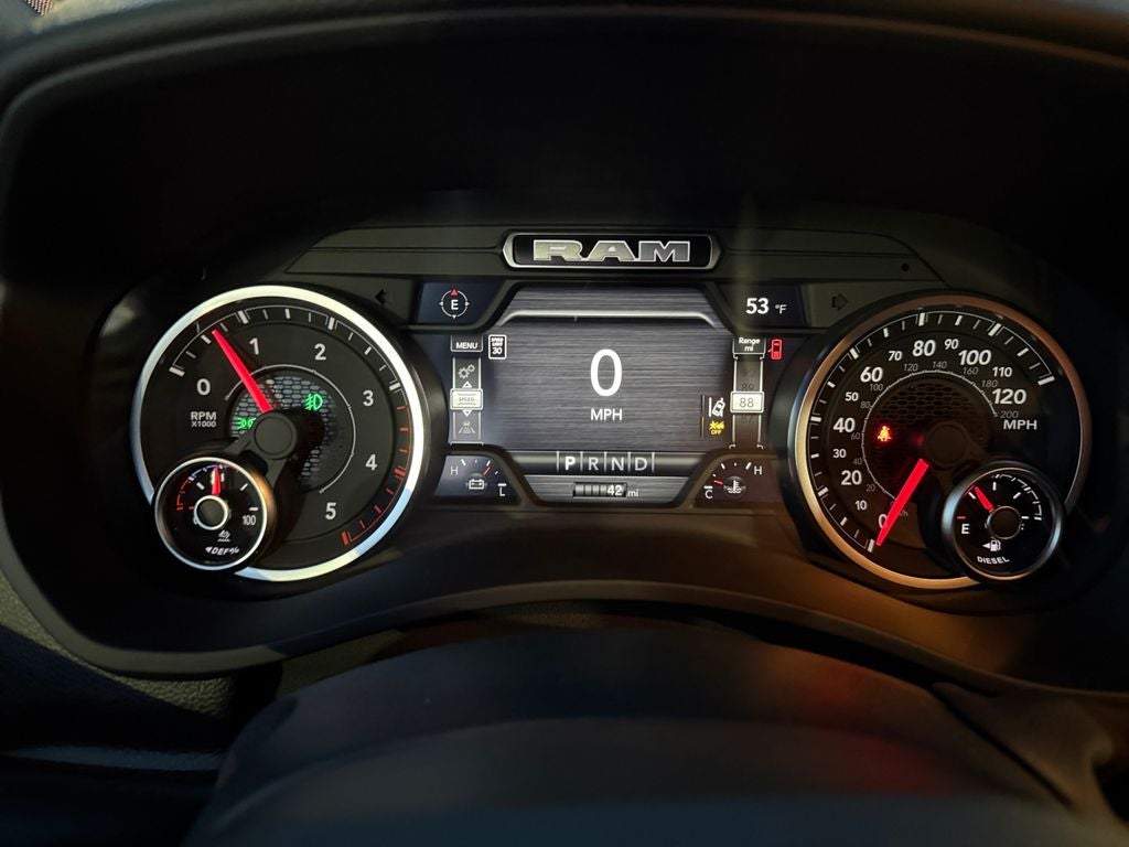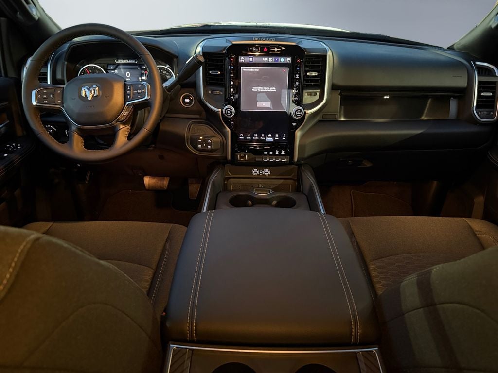 Quick Order Package 24Z Big Horn. Big Horn Level 2 Plus Equipment Group: Google Android Auto; SiriusXM Radio Service; Surround View Camera System; Blind Spot and Cross Path Detection; For Details. Visit DriveUconnect.com; Power Adjustable Pedals; For More Info. Call 800-643-2112; Integrated Voice Command with Bluetooth®; Emergency Vehicle Alert System (EVAS); 12" Touchscreen Display; Glove Box Lamp; Auto Power-Folding Mirrors; Footwell Courtesy Lamp; 115V Auxiliary Rear Power Outlet; Media Hub with 2 Charge Only USBs; Anti-Spin Differential Rear Axle; Drowsy Driver Detection; Heated Front Seats; Mirror Running Lights; MOPAR Deployable Bed Step; Exterior 115V AC Outlet; Alexa Built-In; Apple CarPlay; Premium Cloth Bucket Seats; Power-Adjustable Convex Aux Mirrors; Active Lane Management System; Forward and Reverse Utility Lights; Locking Lower Glove Box; Remote Start System; 9 Alpine Speakers with Subwoofer; Disassociated Touchscreen Display; Dual Wireless Charging Pad; Trailer Tire Pressure Monitoring System; Dual Glove Boxes; 115-Volt Auxiliary Front Power Outlet; Universal Garage Door Opener; 2nd Row in Floor Storage Bins; Sun Visors with Illuminated Vanity Mirrors; Center Stop Lamp with Cargo View Camera; Rain Sensitive Windshield Wipers; Rear View Auto Dim Mirror; Rear Power Sliding Window; Rear Dome with On/off Switch Lamp; LED Bed Lighting; Connectivity - US/Canada; Traffic Sign Recognition; GPS Navigation; 4G LTE Wi-Fi Hot Spot; Adaptive Steering System; GPS Antenna Input; Exterior Mirrors with Heating Element; SiriusXM with 360L; Global Telematics Box Module; Connected Travel and Traffic Services; Heated Steering Wheel; Foam Bottle Insert (door Trim Panel); Black Exterior Mirrors; Dampened Tailgate; Trailer Reverse Guidance; Big Horn Instrument Panel Badge; Off-Road Info Pages; Selectable Tire Fill Alert; Trailer Tow Pages; 400W Inverter; HD Radio; Uconnect 5 Navigation with 12.0" Display Radio; Power Heated Folding Telescopic Mirrors; Exterior Mirrors with Supplemental Signals; Steering Wheel Mounted Audio Controls; Exterior Mirrors Courtesy Lamps; Air Conditioning ATC with Dual Zone Control; MOPAR Spray in Bedliner; Auto High Beam Headlamp Control; Cluster 7.0" TFT Color Display; Power Adjust Mirrors; Luxury Steering Wheel; Power Telescoping Mirrors. Night Edition: Firestone Brand Tires; Gloss Black Nostrils/mic Black Grille; LT285/60R20E OWL On/off Road Tires; Black Exterior Truck Badging; 20" X 8.0" Black Painted Aluminum Wheels; Body Color Grille-Surround; Black Interior Accents; Black Wheel Center Hub; Painted Front Bumper; Painted Rear Bumper. Off Road Package: LT275/70R18E OWL On/off Road Tires; Front Performance Tuned Shock Absorbers; Transfer Case Skid Plate Shield; Hill Descent Control; Rear Performance Tuned Shock Absorbers. Blind Spot and Cross Path Detection. Anti-Spin Differential Rear Axle. Premium Cloth Bucket Seats. Remote Start System. Forged Blue Metallic. Rear Wheelhouse Liners. Transfer Case Skid Plate Shield. **Equipment listed is based on original vehicle build and subject to change. Please confirm the accuracy of the included equipment by calling the dealer prior to purchase.**