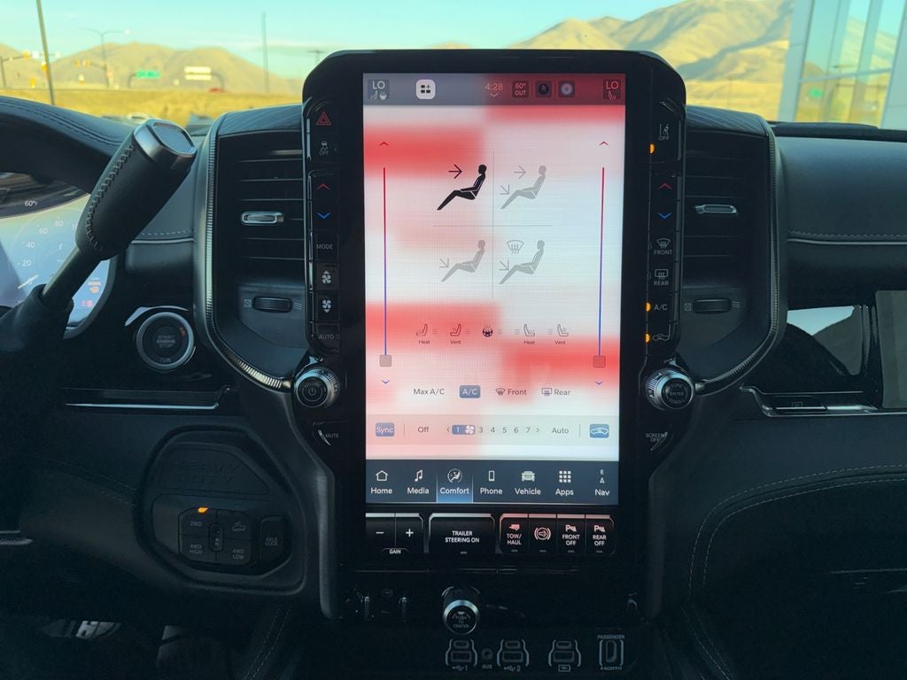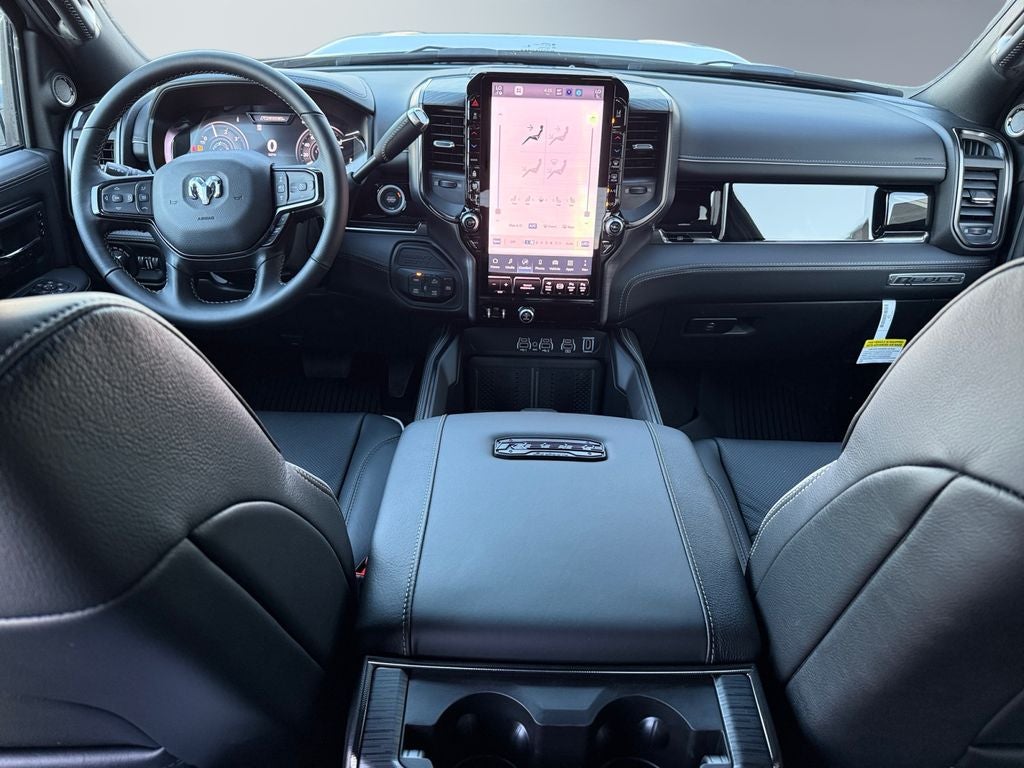 Tow Technology Plus Group: Auxiliary Switches Prep; Trailer Reverse Steering Control; Digital 3.0 Rear View Auto Dimming Mirror. Safety Group: Active Lane Management System; Auto High Beam Headlamp Control; Rain Sensitive Windshield Wipers; Drowsy Driver Detection; Traffic Sign Recognition; Adaptive Steering System. Towing Technology Group: Center Stop Lamp with Cargo View Camera; Surround View Camera System; Trailer Tire Pressure Monitoring System; Trailer Reverse Guidance; Surround View Camera System; Trailer Tire Pressure Monitoring System; Trailer Reverse Guidance. Quick Order Package 24R Rebel. Rebel Level 2 Equipment Group: Google Android Auto; SiriusXM Radio Service; Power Adjustable Pedals with Memory; For Details. Visit DriveUconnect.com; For More Info. Call 800-643-2112; Front Passenger Interactive Display; Integrated Voice Command with Bluetooth®; Emergency Vehicle Alert System (EVAS); Power Deployable Running Boards; Auto Power-Folding Mirrors; Mirror Running Lights; MOPAR Deployable Bed Step; Alexa Built-In; Apple CarPlay; Power-Adjustable Convex Aux Mirrors; Premium Overhead Console; Forward and Reverse Utility Lights; Disassociated Touchscreen Display; Leather Wrapped Shift Control; 17 Speaker Harman/kardon Premium Sound; LED Interior Lighting; LED Dome Lamp with On/off Switch; Universal Garage Door Opener; Sun Visors with Illuminated Vanity Mirrors; Leather Trimmed Bucket Seats (NL); Center Stop Lamp with Cargo View Camera; Rain Sensitive Windshield Wipers; LED Bed Lighting; Connectivity - US/Canada; Body Color Door Handles; GPS Navigation; 4G LTE Wi-Fi Hot Spot; GPS Antenna Input; Overhead LED Lamps; Exterior Mirrors with Heating Element; Auto Dim Exterior Mirror; SiriusXM with 360L; Global Telematics Box Module; Leather Wrapped Grab Handle; Connected Travel and Traffic Services; Black Exterior Mirrors; Off-Road Info Pages; Selectable Tire Fill Alert; Trailer Tow Pages; HD Radio; 14.4" Touchscreen Display; Power Heated Fold Telescopic Mirrors with Memory; Exterior Mirrors with Supplemental Signals; Sport Performance Hood; Exterior Mirrors Courtesy Lamps; Uconnect 5 Nav with 14.4" Display; MOPAR Spray in Bedliner; Front Door Locks 2-Door Passive Entry; Auto High Beam Headlamp Control; Exterior Mirrors with Memory; Luxury Door Trim Panel; Aluminum Litho Instrument Panel Bezels with Black Trim; Power Adjust Mirrors; Power Telescoping Mirrors; MOPAR Front and Rear Rubber Floor Mats; Auto Dim Exterior Passenger Mirror; Auto Adjust in Reverse Exterior Mirrors. RamBox Cargo Management System: Truck Bed Cargo Divider; Vendor Painted Cargo Box; 4 Adjustable Cargo Tie-Down Hooks; LED Bed Lighting; Vendor Painted Cargo Box Tracking. Power Sunroof. Sport Performance Hood. Center Stop Lamp with Cargo View Camera. MOPAR Front and Rear Rubber Floor Mats. **Equipment listed is based on original vehicle build and subject to change. Please confirm the accuracy of the included equipment by calling the dealer prior to purchase.**