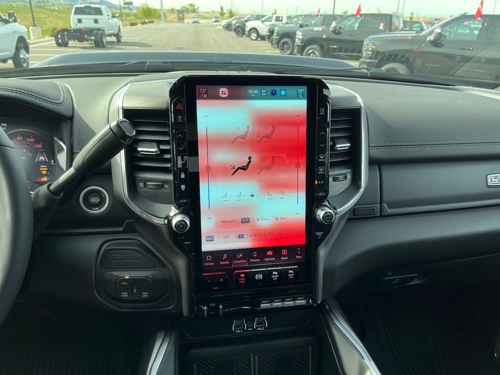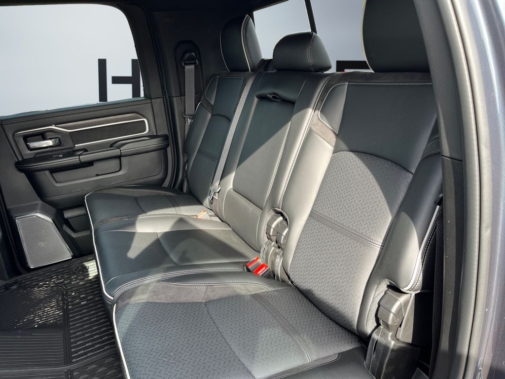 Cold Weather Group: Engine Block Heater; MOPAR Winter Front Grille Cover. Quick Order Package 24H Laramie. Night Edition: Firestone Brand Tires; Black Exterior Truck Badging; 17" X 6.0" Black Machined Aluminum Wheels; Gloss Black Grille Billets/accents; Body Color Grille Surround; Sport Performance Hood; Black Wheel Center Hub; Firestone Brand Tires; LT285/60R20E OWL On/off Road Tires; Black Exterior Truck Badging; 20" X 8" Black Painted Aluminum Wheels; Gloss Black Grille Billets/accents; Body Color Grille Surround; Sport Performance Hood; Black Wheel Center Hub. Towing Technology Group: Center Stop Lamp with Cargo View Camera; MOPAR Trailer Camera Wiring with No Camera; Surround View Camera System; Trailer Tire Pressure Monitoring System; Trailer Reverse Guidance. Laramie Level 2 Plus Equipment Group: Google Android Auto; SiriusXM Radio Service; Power Adjustable Pedals with Memory; For Details Visit DriveUconnect.com; For More Info. Call 800-643-2112; Integrated Voice Command with Bluetooth®; Emergency Vehicle Alert System (EVAS); Power Deployable Running Boards; Auto Power-Folding Mirrors; Drowsy Driver Detection; Mirror Running Lights; MOPAR Deployable Bed Step; Alexa Built-In; Apple CarPlay; Power-Adjustable Convex Aux Mirrors; Active Lane Management System; Forward and Reverse Utility Lights; Disassociated Touchscreen Display; Remote Tailgate Release; 17 Speaker Harman/kardon Premium Sound; Center Stop Lamp with Cargo View Camera; Rain Sensitive Windshield Wipers; LED Bed Lighting; Connectivity - US/Canada; Traffic Sign Recognition; GPS Navigation; 4G LTE Wi-Fi Hot Spot; Adaptive Steering System; GPS Antenna Input; Exterior Mirrors with Heating Element; Auto Dim Exterior Mirror; SiriusXM with 360L; Global Telematics Box Module; Connected Travel and Traffic Services; Foam Bottle Insert (door Trim Panel); Black Exterior Mirrors; Off-Road Information Pages; Selectable Tire Fill Alert; Trailer Tow Pages; Leather Trimmed Bucket Seats; HD Radio; 14.4" Touchscreen Display; Power Heated Folding Telescopic Mirrors with Memory; Exterior Mirrors with Supplemental Signals; Exterior Mirrors Courtesy Lamps; Uconnect 5 Nav with 14.4" Display; MOPAR Spray in Bedliner; Auto High Beam Headlamp Control; Exterior Mirrors with Memory; Power Adjust Mirrors; Power Telescoping Mirrors; Auto Dim Exterior Passenger Mirror; Auto Adjust in Reverse Exterior Mirrors; Google Android Auto; SiriusXM Radio Service; Power Adjustable Pedals with Memory; For Details Visit DriveUconnect.com; For More Info. Call 800-643-2112; Integrated Voice Command with Bluetooth®; Emergency Vehicle Alert System (EVAS); Power Deployable Running Boards; Auto Power-Folding Mirrors; Drowsy Driver Detection; Mirror Running Lights; MOPAR Deployable Bed Step; Alexa Built-In; Apple CarPlay; Power-Adjustable Convex Aux Mirrors; Active Lane Management System; Forward and Reverse Utility Lights; Disassociated Touchscreen Display; Remote Tailgate Release; 17 Speaker Harman/kardon Premium Sound; Center Stop Lamp with Cargo View Camera; Rain Sensitive Windshield Wipers; LED Bed Lighting; Connectivity - US/Canada; Traffic Sign Recognition; GPS Navigation; 4G LTE Wi-Fi Hot Spot; Adaptive Steering System; GPS Antenna Input; Exterior Mirrors with Heating Element; Auto Dim Exterior Mirror; SiriusXM with 360L; Global Telematics Box Module; Connected Travel and Traffic Services; Foam Bottle Insert (door Trim Panel); Off-Road Information Pages; Selectable Tire Fill Alert; Trailer Tow Pages; Leather Trimmed Bucket Seats; HD Radio; 14.4" Touchscreen Display; Power Heated Folding Telescopic Mirrors with Memory; Exterior Mirrors with Supplemental Signals; Exterior Mirrors Courtesy Lamps; Uconnect 5 Nav with 14.4" Display; MOPAR Spray in Bedliner; Auto High Beam Headlamp Control; Chrome Exterior Mirrors; Exterior Mirrors with Memory; Power Adjust Mirrors; Power Telescoping Mirrors; Auto Dim Exterior Passenger Mirror; Auto Adjust in Reverse Exterior Mirrors. Tow-Mode Digital Rearview Mirror Package: Tow-Mode Camera (wired); Digital Rearview Mirror. Power Sunroof. Power Deployable Running Boards. 5th Wheel/gooseneck Towing Prep Group. Leather Trimmed Bucket Seats. Center Stop Lamp with Cargo View Camera. Forged Blue Metallic. Instrument Panel Mounted Auxiliary Switches. MOPAR Front and Rear Rubber Floor Mats. Clearance Lamps. **Equipment listed is based on original vehicle build and subject to change. Please confirm the accuracy of the included equipment by calling the dealer prior to purchase.**