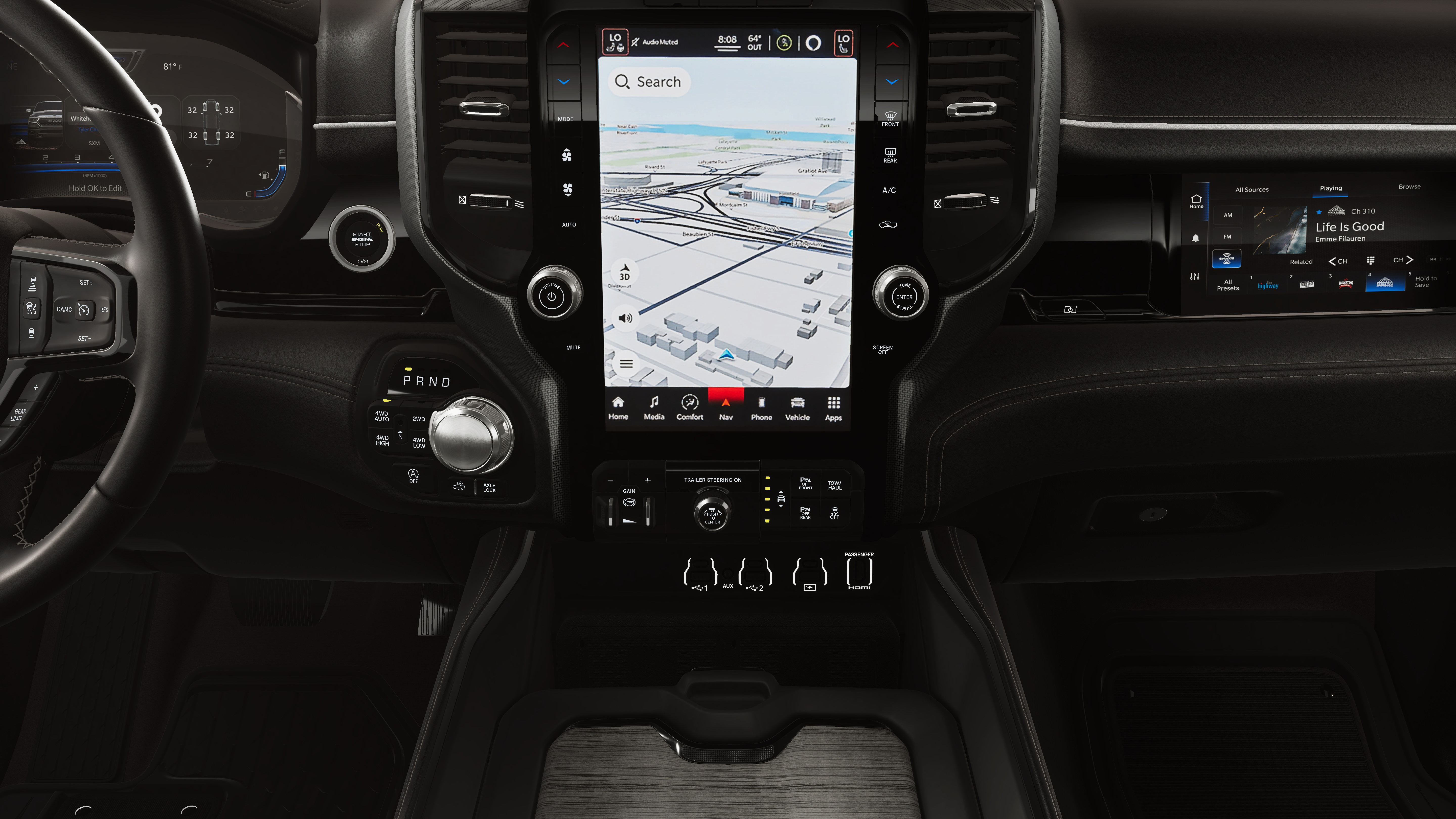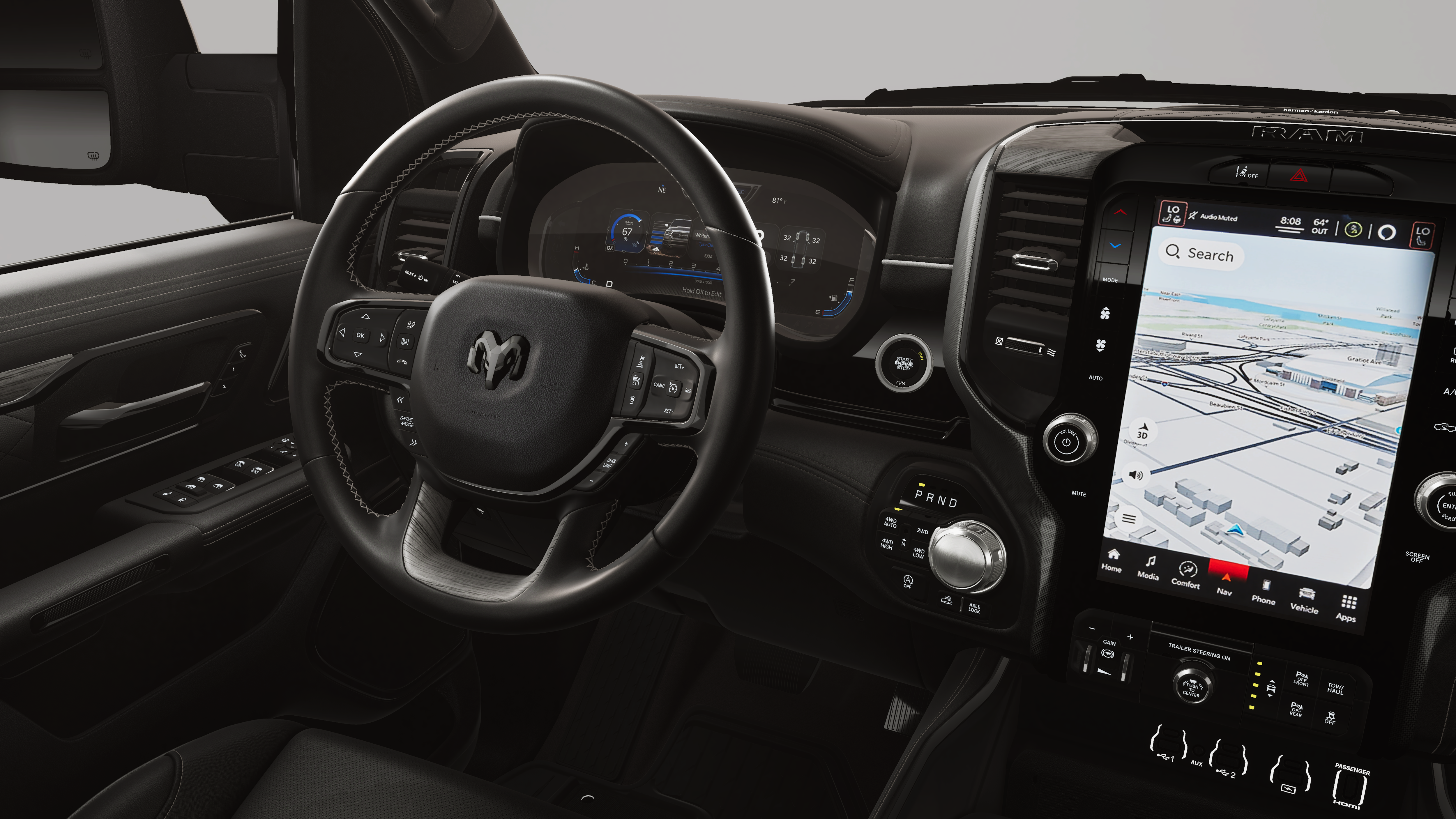 This Ram 1500 offers Android Auto for seamless smartphone integration. The leather seats in this unit are a must for buyers looking for comfort, durability, and style. This 2026 Ram 1500 's Forward Collision Warning system alerts the driver to potential front-end collisions, enhancing safety. This vehicle has auto-adjust speed for safe following. An off-road package is installed on this unit so you are ready for your four-wheeling best. You'll never again be lost in a crowded city or a country region with the navigation system on this unit. Start it from inside with remote start. This 1/2 ton pickup features a hands-free Bluetooth® phone system. This Ram 1500 is pure luxury with a heated steering wheel. Apple CarPlay: Seamless smartphone integration for this Ram 1500 - stay connected and entertained on the go! Protect it from unwanted accidents with a cutting edge backup camera system. Maintaining a stable interior temperature in this 2026 Ram 1500 is easy with the climate control system.