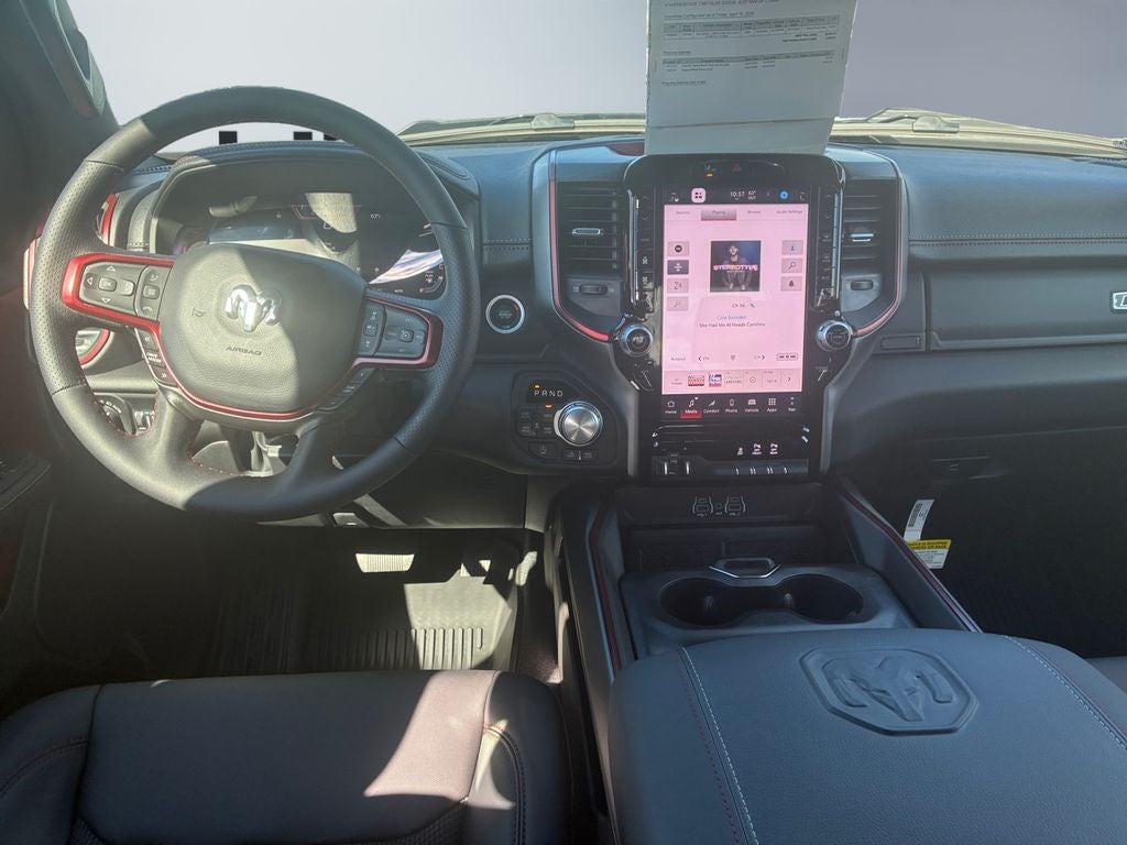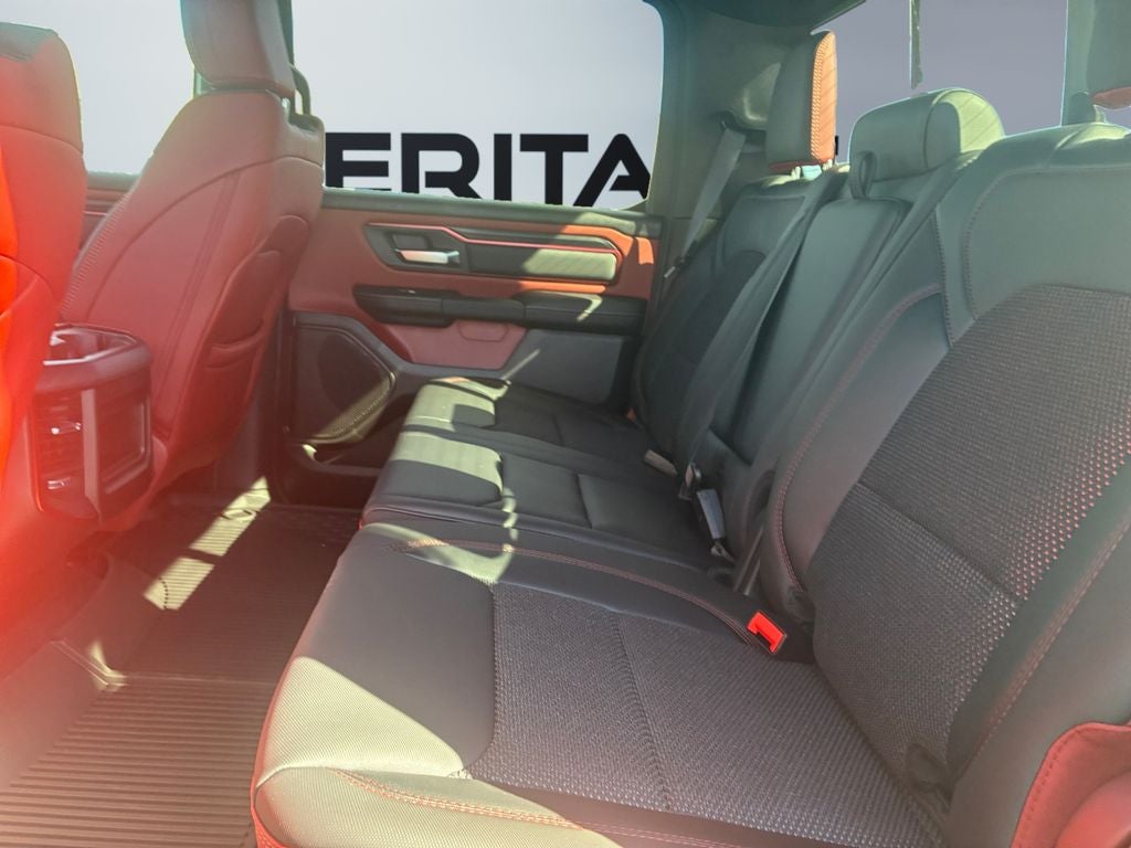 The vehicle offers Apple CarPlay for seamless connectivity. The leather seats in this Ram 1500 are a must for buyers looking for comfort, durability, and style. This Ram 1500's Forward Collision Warning system alerts the driver to potential front-end collisions, enhancing safety. Never get into a cold vehicle again with the remote start feature on the vehicle. The vehicle offers Android Auto for seamless smartphone integration. The vehicle has auto-adjust speed for safe following. The Ram 1500 is pure luxury with a heated steering wheel. This unit has a premium sound system installed. Protect it from unwanted accidents with a cutting edge backup camera system. This 1/2 ton pickup features a hands-free Bluetooth® phone system. An off-road package is installed on this model so you are ready for your four-wheeling best. This Ram 1500 is equipped with the latest generation of XM/Sirius Radio. You'll never again be lost in a crowded city or a country region with the navigation system on it.