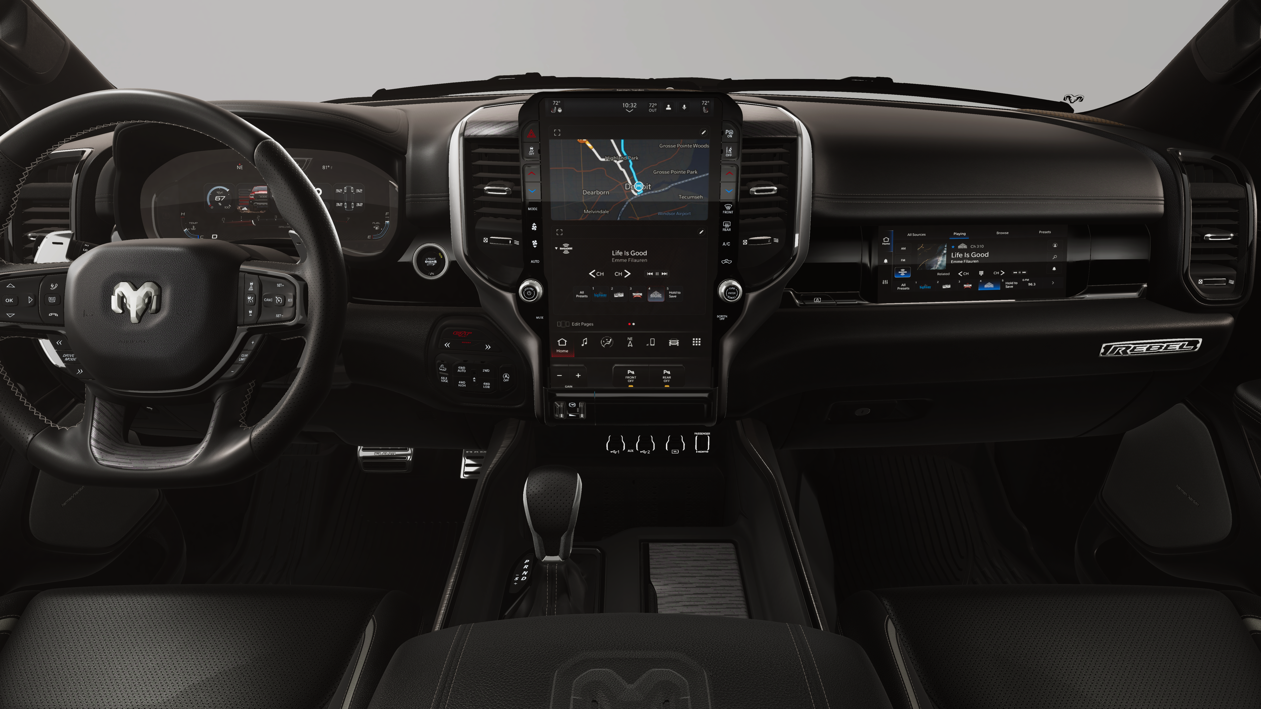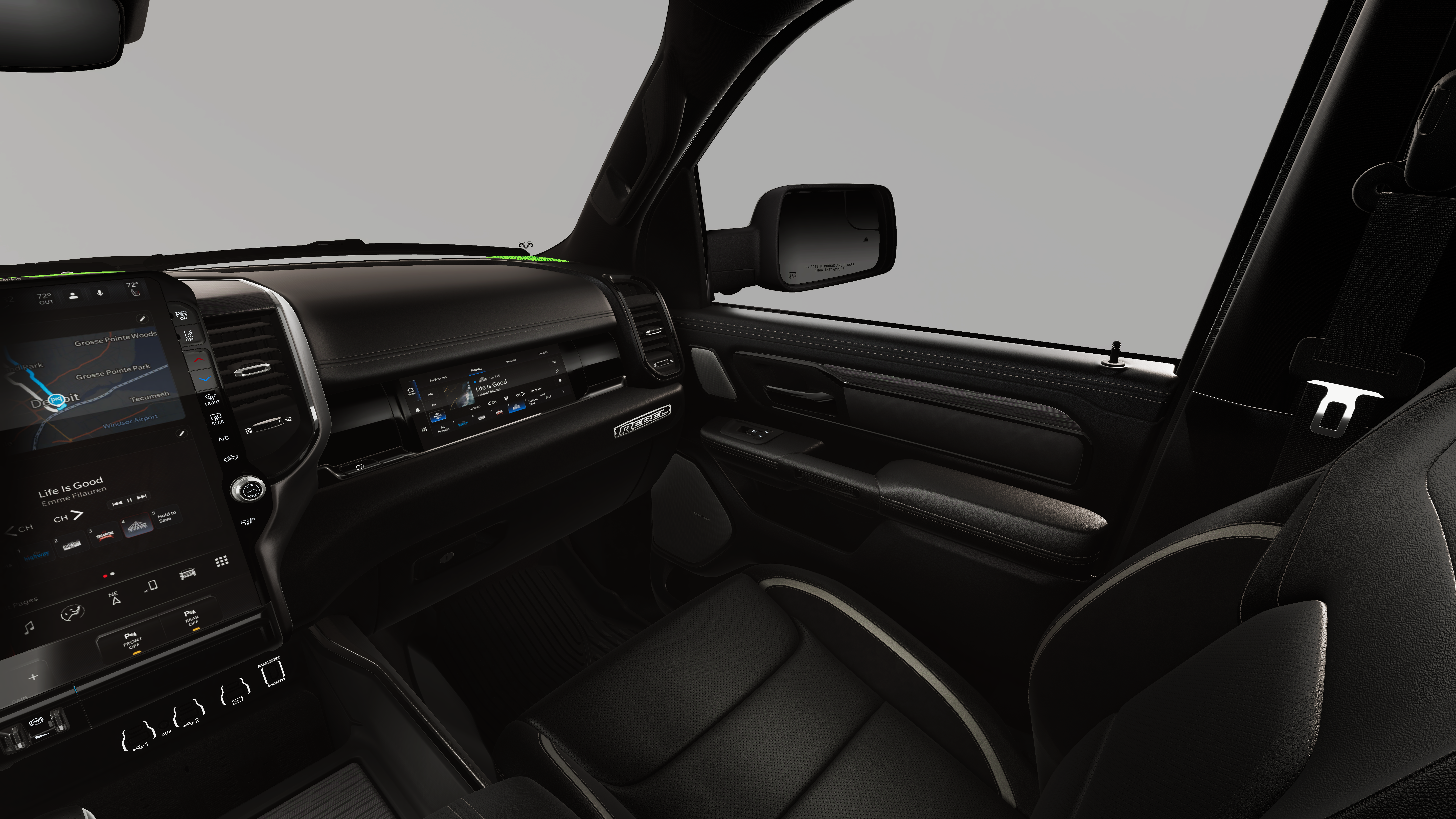 G/T Package: Floor Console; Under Seat Lighting; Leather/vinyl Bucket Seats; G/T Decal; Leather Wrapped Shift Knob; Leather-Wrapped Steering Wheel; Steering Wheel Mounted Shift Control; G/T Exhaust; GT Interior Theme; MOPAR Bright Pedal Kit; Performance Pages. Quick Order Package 21W Rebel. Rebel Level 2 Equipment Group: Google Android Auto; SiriusXM Radio Service; USB Host Flip; Rear Window Defroster; Rain Sensitive Windshield Wipers; Integrated Center Stack Radio; Power Adjustable Pedals with Memory; Front Passenger Interactive Display; Integrated Voice Command with Bluetooth®; Power 2-Way Passenger Lumbar Adjust; Connectivity - US/Canada; Auto Power-Folding Mirrors; GPS Navigation; 4G LTE Wi-Fi Hot Spot; 115V Auxiliary Rear Power Outlet; GPS Antenna Input; Media Hub with 2 Charge Only USBs; Exterior Mirrors with Heating Element; Proximity Approach/departure Lamps; Auto Dim Exterior Driver Mirror; SiriusXM with 360L; Accent Color Door Handles; Global Telematics Box Module; Connected Travel and Traffic Services; Heated Second Row Seats; Power Adjust 8-Way Front Passenger Seat; Security Alarm; Apple CarPlay; Black Painted Exterior Mirrors Caps; Off-Road Information Pages; Exterior Mirrors Approach Lamps; Disassociated Touchscreen Display; HD Radio; Smartphone as a Key Capable; 14.4" Touchscreen Display; Accent Color Premium Power Mirrors; Dual Wireless Charging Pad; Exterior Mirrors with Supplemental Signals; Exterior Mirrors Courtesy Lamps; Uconnect 5 Nav with 14.4" Display; Harman/kardon 19 Speaker Premium Sound; 2-Door Passive Entry. Front Door Locks; Accent Color Tailgate Handle; Exterior Mirrors with Memory; Driver Seat Memory; Power Tailgate; Convex Wide-Angle Exterior Mirror Insert; Radio/driver Seat/mirrors/pedals Memory. Dual-Pane Panoramic Sunroof. 33 Gallon Fuel Tank. Trailer Brake Control. Rear Wheelhouse Liners. **Equipment listed is based on original vehicle build and subject to change. Please confirm the accuracy of the included equipment by calling the dealer prior to purchase.**