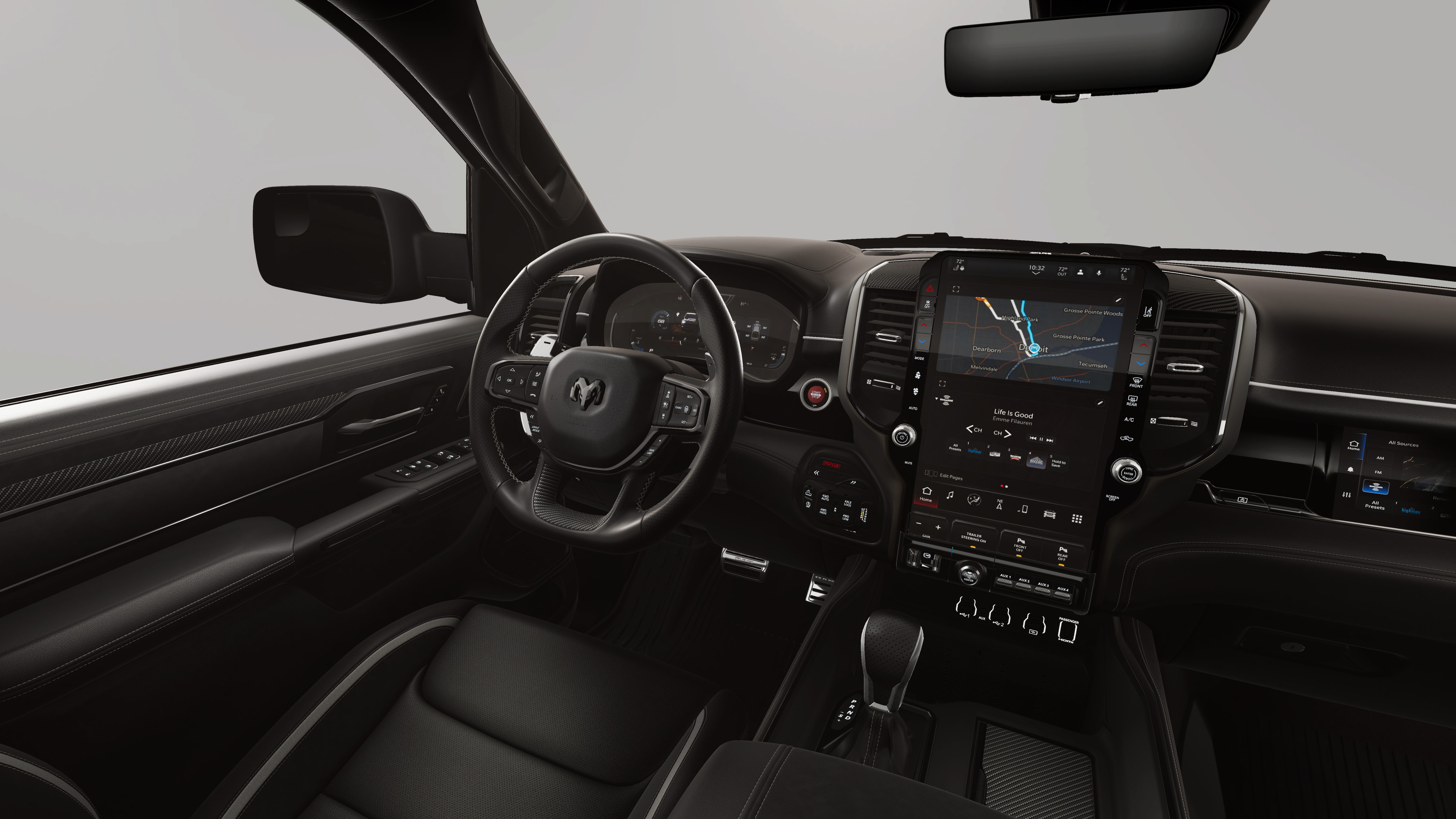 Quick Order Package 22Y RHO. RHO Level 1 Equipment Group: Full Length Premium Upgraded Floor Console; SiriusXM Radio Service; USB Host Flip; Surround View Camera System; Rain Sensitive Windshield Wipers; Integrated Center Stack Radio; LED CHMSL Lamp; Power Adjustable Pedals with Memory; Front Passenger Interactive Display; Integrated Voice Command with Bluetooth®; Connectivity - US/Canada; Traffic Sign Recognition; Digital 3.0 Rear View Auto Dim Mirror; GPS Navigation; 4G LTE Wi-Fi Hot Spot; Hands-Free Active Driving Assist System; Front Passenger Power Seat Back Massage; Head Up Display; Connected Travel and Traffic Services; Evasive Steer Assist; Heated Second Row Seats; Drowsy Driver Detection; Driver Power Seat Back Massage; Intersection Collision Assist System; Disassociated Touchscreen Display; Leather/carbon Flat-Bottom Steering Wheel; HD Radio; Smartphone as a Key Capable; 14.4" Touchscreen Display; Driver/passenger Wrapped Assist Handles; Dual Wireless Charging Pad; Uconnect 5 Nav with 14.4" Display; Ventilated Rear Seats; Rear 60/40 Folding Split Recline Seat; 240 Amp Alternator; Ventilated Front Seats; Harman/kardon 19 Speaker Premium Sound; Premium Wrapped Instrument Panel Bezel; Exterior Mirrors with Memory; Luxury Front Door Trim Panel; Real Carbon Fiber Interior Accents; Driver Seat Memory; Power Tailgate; Radio/driver Seat/mirrors/pedals Memory; 12-Way/1-way Trailer Connector; Full Length Premium Upgraded Floor Console; SiriusXM Radio Service; USB Host Flip; Surround View Camera System; Rain Sensitive Windshield Wipers; Integrated Center Stack Radio; LED CHMSL Lamp; Power Adjustable Pedals with Memory; Front Passenger Interactive Display; Integrated Voice Command with Bluetooth®; Connectivity - US/Canada; Traffic Sign Recognition; GPS Navigation; 4G LTE Wi-Fi Hot Spot; Hands-Free Active Driving Assist System; Front Passenger Power Seat Back Massage; Head Up Display; Connected Travel and Traffic Services; Evasive Steer Assist; Heated Second Row Seats; Drowsy Driver Detection; Driver Power Seat Back Massage; Intersection Collision Assist System; Disassociated Touchscreen Display; Leather/carbon Flat-Bottom Steering Wheel; HD Radio; Smartphone as a Key Capable; 14.4" Touchscreen Display; Driver/passenger Wrapped Assist Handles; Dual Wireless Charging Pad; Uconnect 5 Nav with 14.4" Display; Ventilated Rear Seats; Rear 60/40 Folding Split Recline Seat; 240 Amp Alternator; Ventilated Front Seats; Harman/kardon 19 Speaker Premium Sound; Premium Wrapped Instrument Panel Bezel; Exterior Mirrors with Memory; Luxury Front Door Trim Panel; Real Carbon Fiber Interior Accents; Driver Seat Memory; Power Tailgate; Radio/driver Seat/mirrors/pedals Memory; Digital Rearview Mirror; 12-Way/1-way Trailer Connector. Trailer Tow Group: Trailer Light Check; Trailer Reverse Steering Control; Trailer Tire Pressure Monitoring System; Trailer Reverse Steering Control; Trailer Tire Pressure Monitoring System. Dual-Pane Panoramic Sunroof. **Equipment listed is based on original vehicle build and subject to change. Please confirm the accuracy of the included equipment by calling the dealer prior to purchase.**