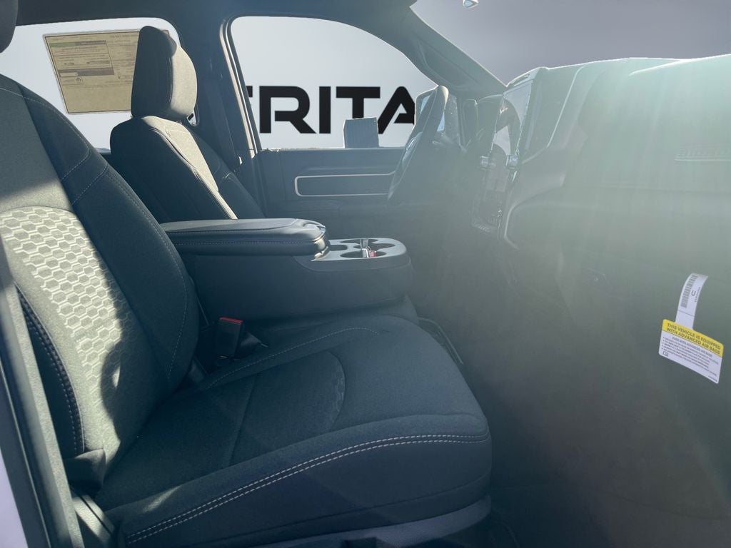 Quick Order Package 24Z Big Horn. Cold Weather Group: Engine Block Heater; MOPAR Winter Front Grille Cover. Off Road Package: LT275/70R18E OWL On/off Road Tires; Front Performance Tuned Shock Absorbers; Transfer Case Skid Plate Shield; Hill Descent Control; Rear Performance Tuned Shock Absorbers. Sport Appearance Package: Body Color Grille-Surround; Black Interior Accents; Sport Decal; Painted Front Bumper; Painted Rear Bumper. Big Horn Level 1 Plus Equipment Group: Google Android Auto; SiriusXM Radio Service; For Details. Visit DriveUconnect.com; For More Info. Call 800-643-2112; Integrated Voice Command with Bluetooth®; Emergency Vehicle Alert System (EVAS); 12" Touchscreen Display; Premium Cloth 40/20/40 Bench Seat; Glove Box Lamp; Auto Power-Folding Mirrors; Footwell Courtesy Lamp; Anti-Spin Differential Rear Axle; Mirror Running Lights; MOPAR Deployable Bed Step; Alexa Built-In; Apple CarPlay; Power-Adjustable Convex Aux Mirrors; Forward and Reverse Utility Lights; Locking Lower Glove Box; Remote Start System; 9 Alpine Speakers with Subwoofer; Disassociated Touchscreen Display; Dual Glove Boxes; 2nd Row in Floor Storage Bins; Rear View Auto Dim Mirror; Rear Dome with On/off Switch Lamp; LED Bed Lighting; Connectivity - US/Canada; GPS Navigation; 4G LTE Wi-Fi Hot Spot; GPS Antenna Input; Exterior Mirrors with Heating Element; SiriusXM with 360L; Global Telematics Box Module; Connected Travel and Traffic Services; Foam Bottle Insert (door Trim Panel); Black Exterior Mirrors; Big Horn Instrument Panel Badge; Off-Road Info Pages; Selectable Tire Fill Alert; Trailer Tow Pages; HD Radio; Uconnect 5 Navigation with 12.0" Display Radio; Power Heated Folding Telescopic Mirrors; Exterior Mirrors with Supplemental Signals; Steering Wheel Mounted Audio Controls; Exterior Mirrors Courtesy Lamps; Air Conditioning ATC with Dual Zone Control; MOPAR Spray in Bedliner; Power Adjust Mirrors; Luxury Steering Wheel; Power Telescoping Mirrors. Heated Seats and Wheel Group: Heated Front Seats; Heated Steering Wheel. MOPAR 20K Direct Mount 5th Wheel Hitch. Premium Cloth 40/20/40 Bench Seat. 5th Wheel/gooseneck Towing Prep Group. Anti-Spin Differential Rear Axle. LT275/70R18E OWL On/off Road Tires. Remote Start System. Power 2-Way Driver Lumbar Adjust. Transfer Case Skid Plate Shield. **Equipment listed is based on original vehicle build and subject to change. Please confirm the accuracy of the included equipment by calling the dealer prior to purchase.**