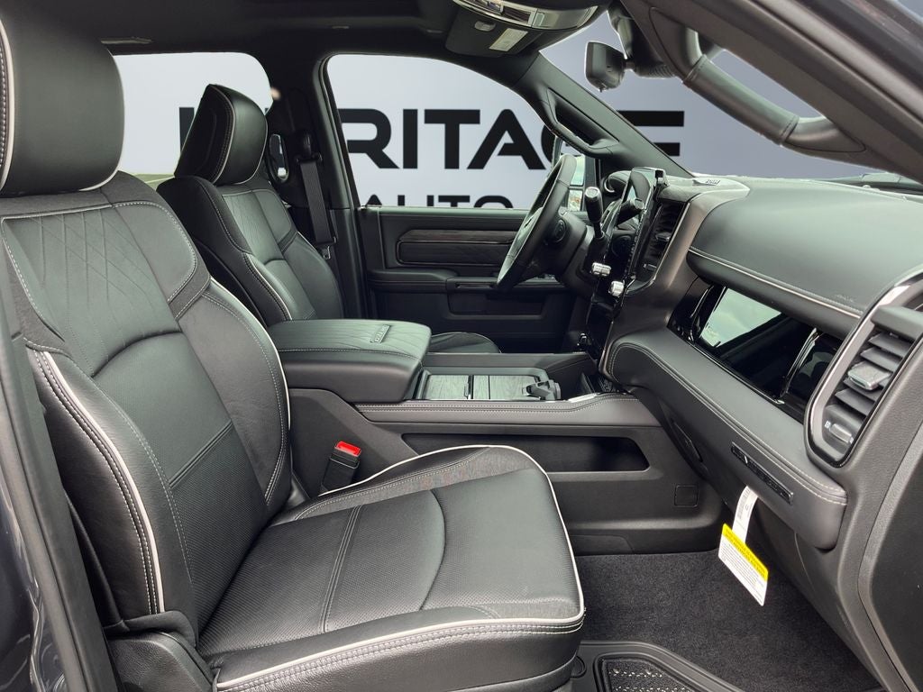 The Ram 3500 offers Apple CarPlay for seamless connectivity. It comes equipped with Android Auto for seamless smartphone integration on the road. Bluetooth® technology is built into this 2026 Ram 3500 , keeping your hands on the steering wheel and your focus on the road. The leather seats in the Ram 3500 are a must for buyers looking for comfort, durability, and style. It is pure luxury with a heated steering wheel. The installed navigation system will keep you on the right path. Protect it from unwanted accidents with a cutting edge backup camera system. This unit has automated speed control that adjusts to maintain a safe following distance, enhancing highway driving convenience. Never get into a cold vehicle again with the remote start feature on the Ram 3500. This 1 ton pickup's Forward Collision Warning feature alerts drivers to potential front-end collisions. When you encounter slick or muddy roads, you can engage the four wheel drive on the Ram 3500 and drive with confidence.