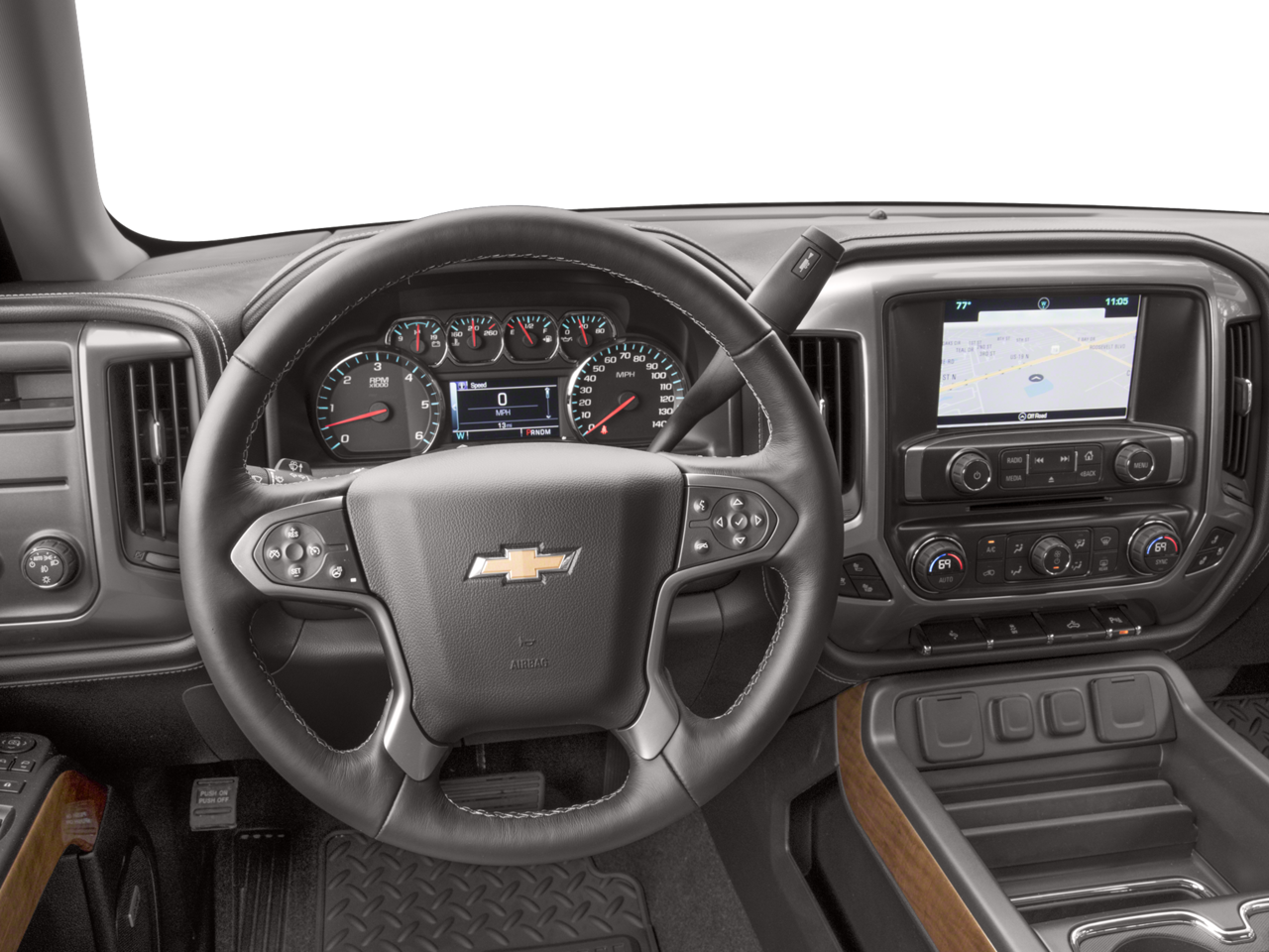 It keeps you comfortable with Auto Climate. Bluetooth® technology is built into the Chevrolet Silverado, keeping your hands on the steering wheel and your focus on the road. The leather seats in this unit are a must for buyers looking for comfort, durability, and style. It features steering wheel audio controls. Never get into a cold vehicle again with the remote start feature on the Chevrolet Silverado. Our dealership has already run the CARFAX report and it is clean. A clean CARFAX is a great asset for resale value in the future. The installed navigation system will keep you on the right path. Good News! This certified CARFAX 1-owner vehicle has only had one owner before you. Protect it from unwanted accidents with a cutting edge backup camera system. When you encounter slick or muddy roads, you can engage the four wheel drive on this vehicle and drive with confidence.