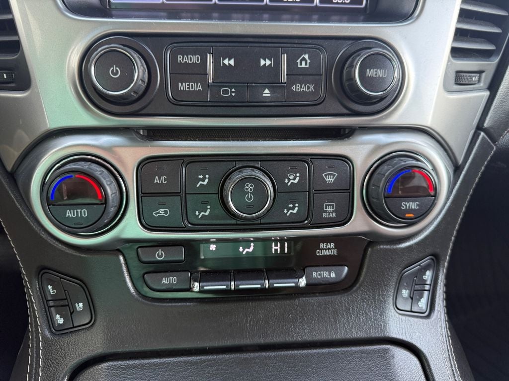 Sun. Entertainment and Destinations Package: AM/FM Stereo with Navigation; Rear Seat Entertainment System; Power Tilt-Sliding Sunroof with Express-Open/close. Premier Plus Edition: Enhanced Driver Information Center; 22" 6-Spoke Split Chrome Wheels; Power-Retractable Assist Steps; 2-Speed Active Electronic Autotrac Transfer Case; 3.23 Rear Axle Ratio; 170 Amp Alternator; 6.2L V8 EcoTec3 Engine; Integrated Trailer Brake Controller; High-Capacity Air Cleaner; AM/FM Stereo with Navigation; Collapsible Cargo Area Organizer; Rear Seat Entertainment System; P285/45R22 AS BW Tires; Power Tilt-Sliding Sunroof with Express-Open/close; Black Roof Rack Cross Bars; Power Release 2nd Row Bucket Seats; Electronic 10-Speed Automatic Transmission with Overdrive; Polished Exhaust Tip. Preferred Equipment Group 1LZ: Memory Settings; Heated Leather Wrapped Steering Wheel; 20" X 9" Polished-Aluminum Wheels; Perforated Leather-Appointed Seat Trim; Remote Vehicle Start; 3rd Row 60/40 Power Fold Split-Bench; Front and Rear Park Assist; Floor Console with Storage Area; 6-Way Power Front Passenger Seat Adjuster; AM/FM Stereo with