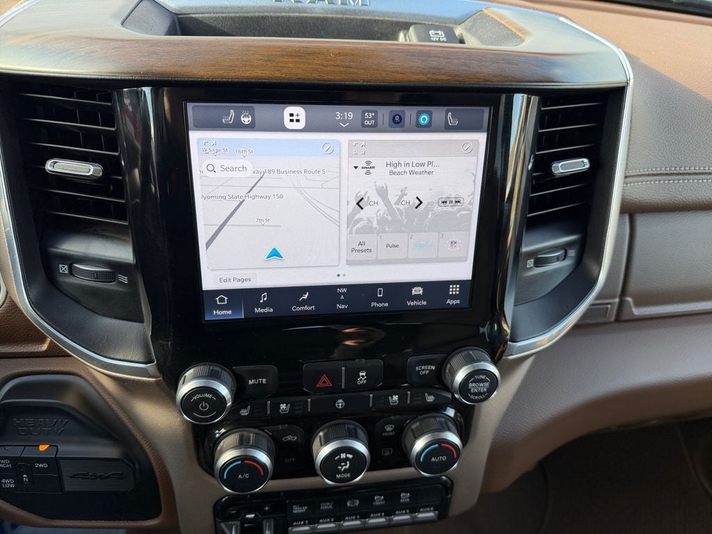Inside, the Laramie trim balances luxury and functionality with heated seats for driver and front passenger, premium materials, and a supportive cabin designed for long shifts or weekend adventures. Safety and convenience features include a blind spot monitor to assist lane changes, hands-free Bluetooth® for safe communication and media streaming, and remote start to warm or cool the cabin before you climb in. Seamless smartphone integration via Android Auto keeps navigation, calls, and music accessible on the go.