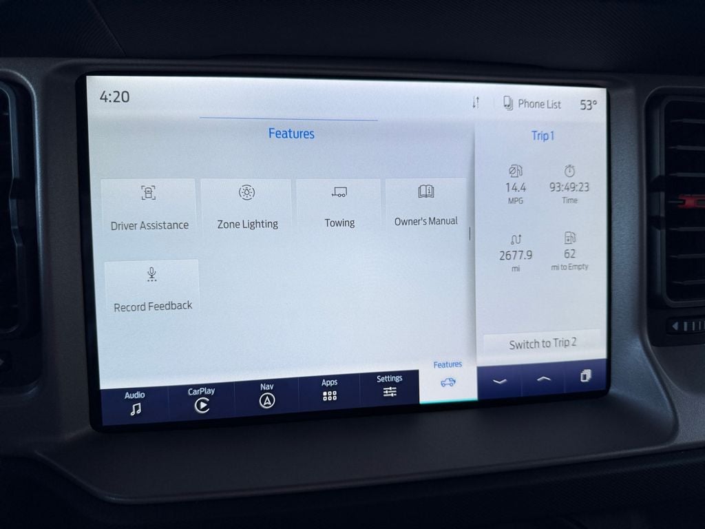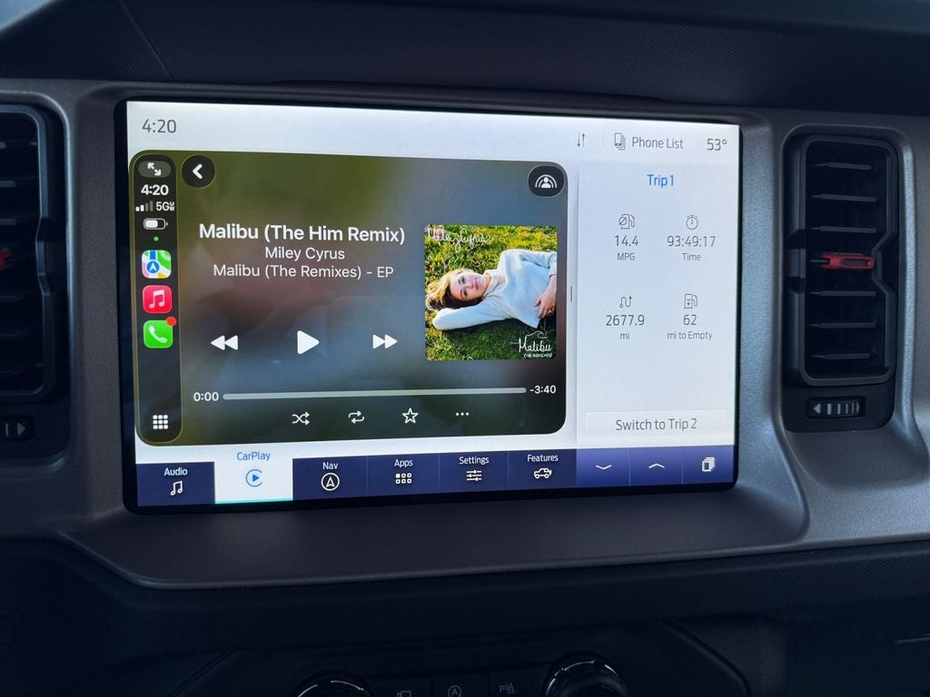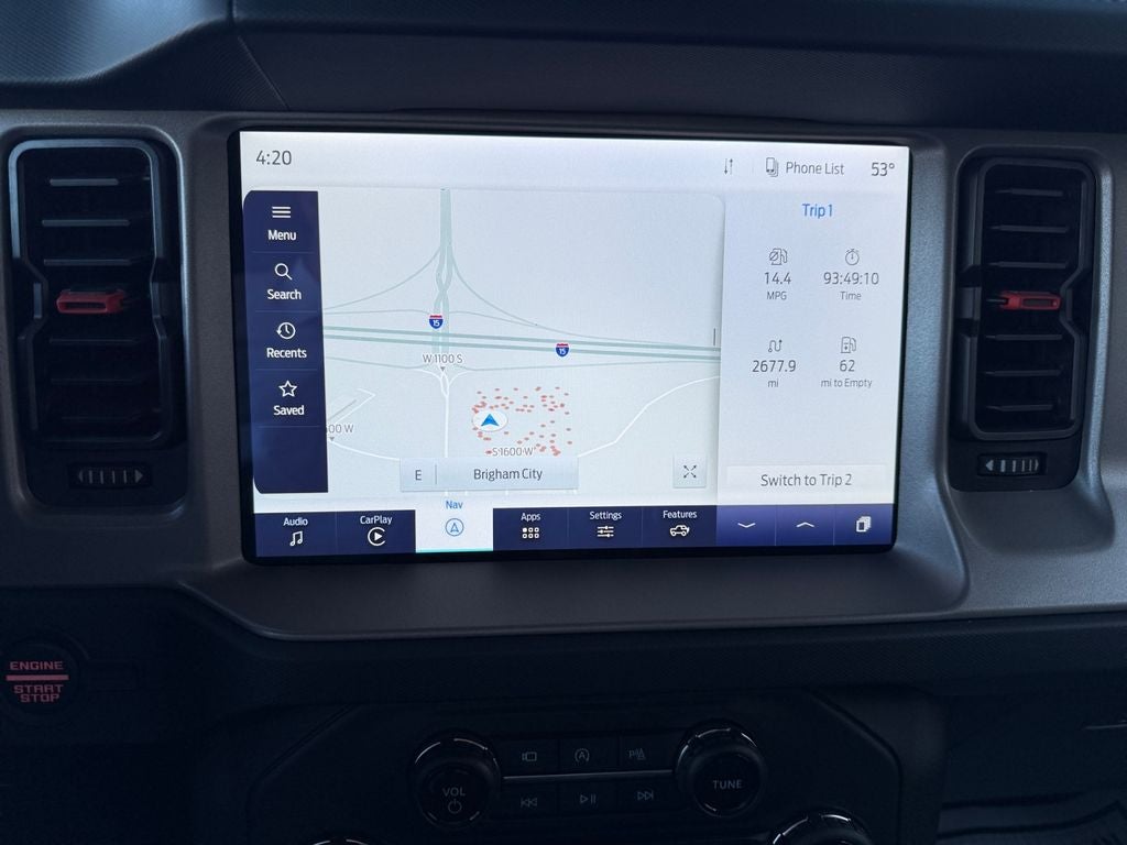The leather seats in this model are a must for buyers looking for comfort, durability, and style. Start it from inside with remote start. Keep your hands warm all winter with a heated steering wheel in this vehicle . This 2023 Ford Bronco Advanced features a hands-free Bluetooth® phone system. The vehicle has automated speed control that adjusts to maintain a safe following distance, enhancing highway driving convenience. Apple CarPlay: Seamless smartphone integration for this unit - stay connected and entertained on the go! This 1/2 ton suv comes equipped with Android Auto for seamless smartphone integration on the road. Protect the vehicle from unwanted accidents with a cutting edge backup camera system. An off-road package is installed on this model so you are ready for your four-wheeling best. You'll never again be lost in a crowded city or a country region with the navigation system on this Ford Bronco.